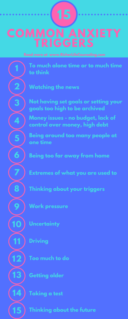 These are just some common anxiety triggers. Did I leave something out? Comment below on any anxiety trigger that I did not list. If you live in the Las Vegas area and are ready to change your anxious thoughts please CLICK HERE to start your journey into a richer, more fulfilled life.